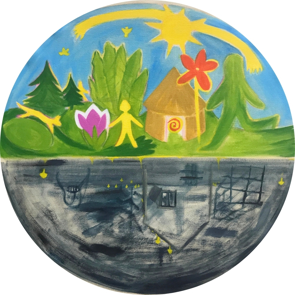 The first series I will present is dedicated to recovering from childhood trauma. The paintings supported me on my journey, helping me navigate high anxiety, terror, and all kinds of strange experiences, toward finding more balance.